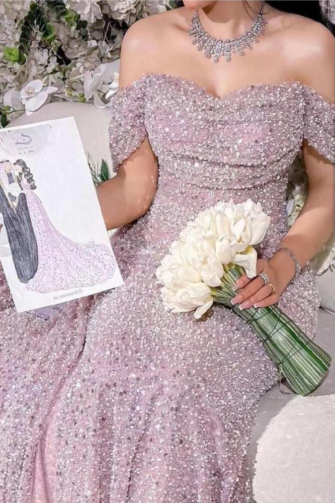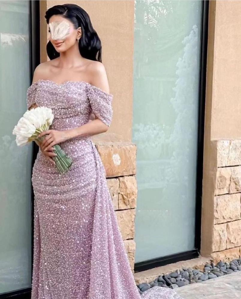 فستان سهرة أنيق مصنوع من قماش الترتر اللامع الخارجي، يعكس الأضواء بطريقة جذابة تضيف لمسة فاخرة وراقية. يتميز الفستان ببطانة داخلية من قماش التفته الناعم، مما يمنحه ثباتًا وأناقة، بالإضافة إلى شعور مريح عند الارتداء. التصميم غالبًا ما يكون ضيقًا عند الخصر لإبراز القوام، مع اتساع تدريجي في الأسفل (قصّة حورية البحر أو A-line)، ويشمل تفاصيل مثل فتحة جانبية أو ظهر مفتوح لمزيد من الجاذبية